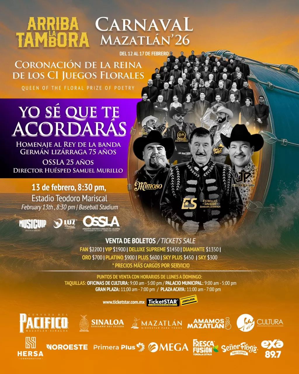La cita con la historia está programada para el viernes 13 de febrero de 2026, a las 8:30 de la noche, en el imponente Estadio Teodoro Mariscal. Este escenario no solo será testigo de un tributo excepcional, sino que también albergará la coronación de la Reina de los Juegos Florales del Carnaval, fusionando dos celebraciones de gran relevancia para la Perla del Pacífico. La ciudad entera se prepara para rendir honores a uno de sus hijos predilectos, cuyo legado ha transformado la música de banda en el alma misma de Sinaloa.