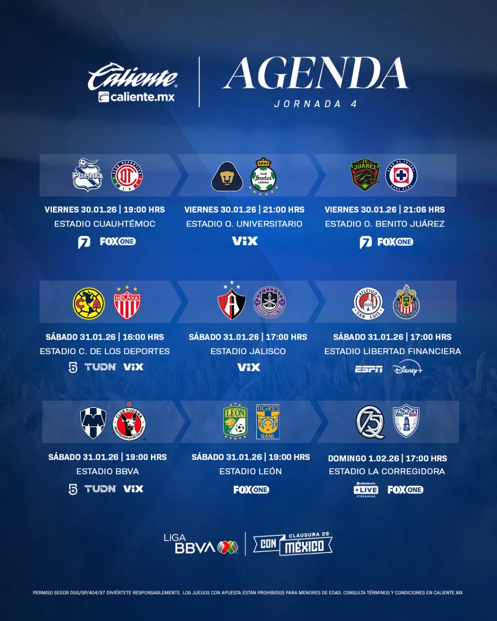 Esta Jornada 4 del Clausura 2026 se presenta como un fin de semana lleno de emoción tanto en el fútbol mexicano como con la destacada participación de talentos nacionales en Europa.