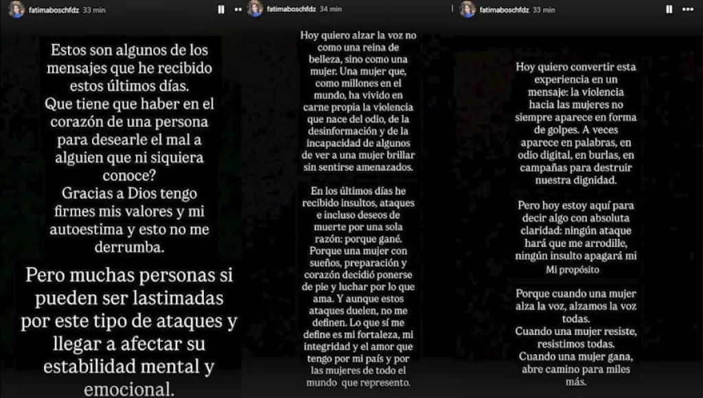 Fátima Bosch, la destacada Miss Universo 2025, ha utilizado su plataforma para denunciar públicamente los "mensajes machistas y de odio" de los que ha sido objeto desde su victoria. En un acto de valentía y transparencia, Bosch expuso en sus redes sociales el ciberacoso y la violencia digital que experimenta, destacando la persistencia de la misoginia en el ámbito público. Esta situación resalta la creciente problemática del acoso en línea que enfrentan las figuras públicas, especialmente las mujeres en roles de alta visibilidad. Los certámenes de belleza, si bien celebran la diversidad y el empoderamiento, a menudo exponen a sus ganadoras a un escrutinio implacable y a ataques personales que trascienden la crítica constructiva. Los mensajes dirigidos a Bosch no solo buscan denigrar su triunfo, sino que también reflejan patrones de agresión de género que continúan prevaleciendo en la sociedad digital. La postura de Bosch, al no callar ante estas agresiones, se convierte en un llamado de atención sobre la importancia de combatir la violencia en línea y promover un entorno más respetuoso para todos.