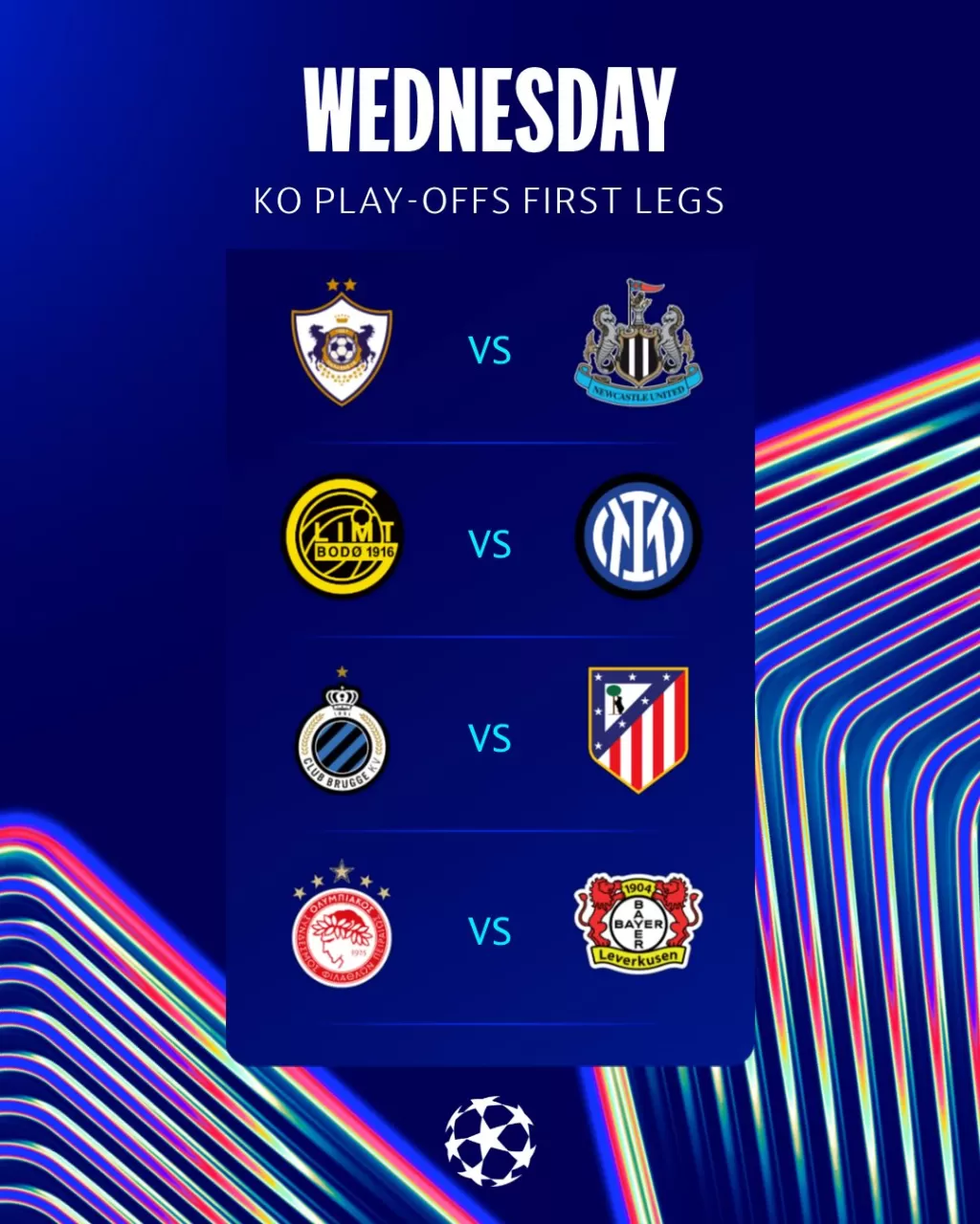 Los partidos de vuelta de estas eliminatorias de repechaje están programados para el 24 y 25 de febrero de 2026, donde los equipos buscarán sellar su destino en la competición. Los resultados de la jornada previa del 17 de febrero, que incluyeron duelos como Galatasaray vs. Juventus y Benfica vs. Real Madrid, dejaron algunas series abiertas, lo que augura un cierre de repechajes lleno de dramatismo.