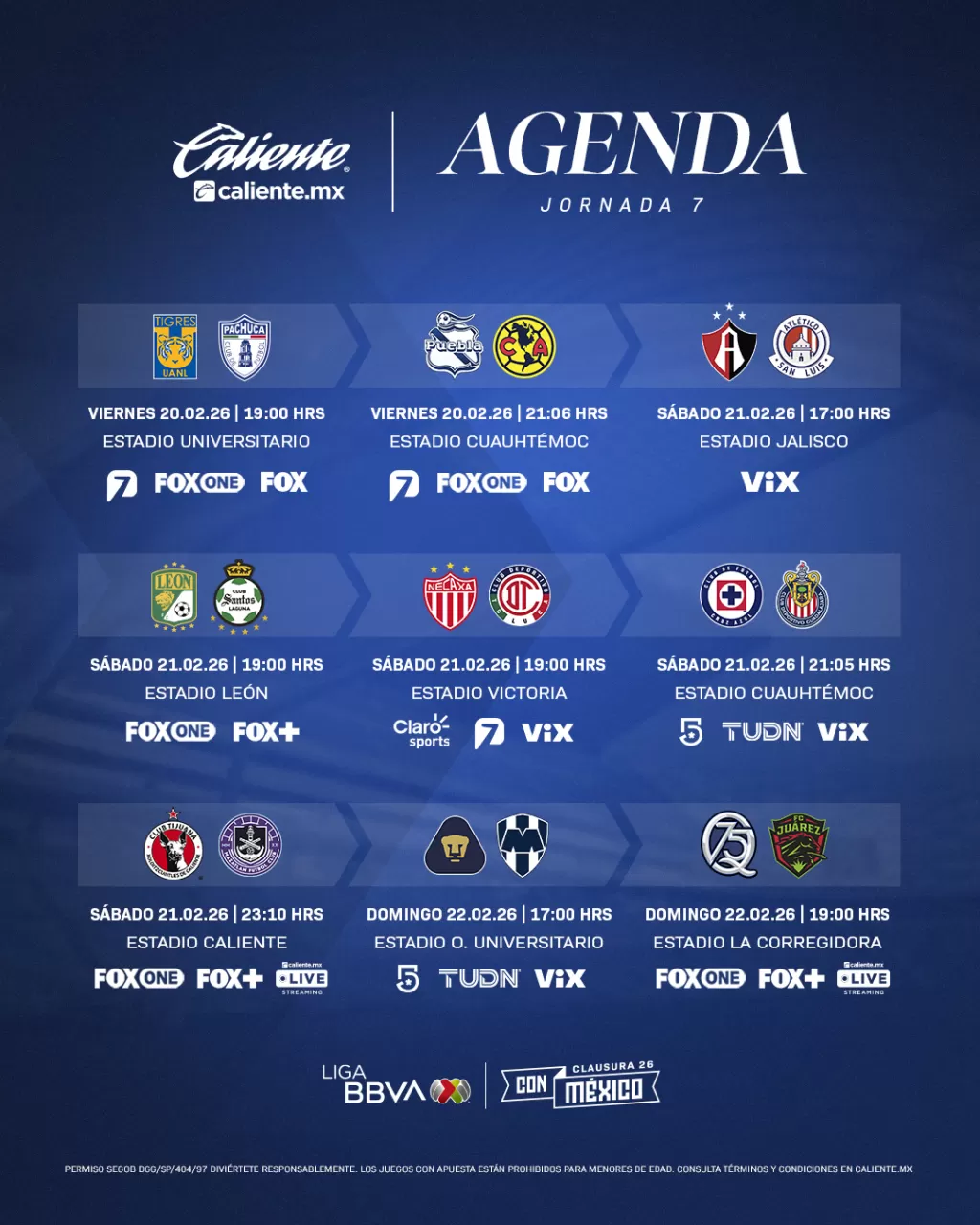 Deportes, Liga BBVA MX, Clausura 2026, Jornada 7, Partidos de Fútbol, Cruz Azul Chivas,