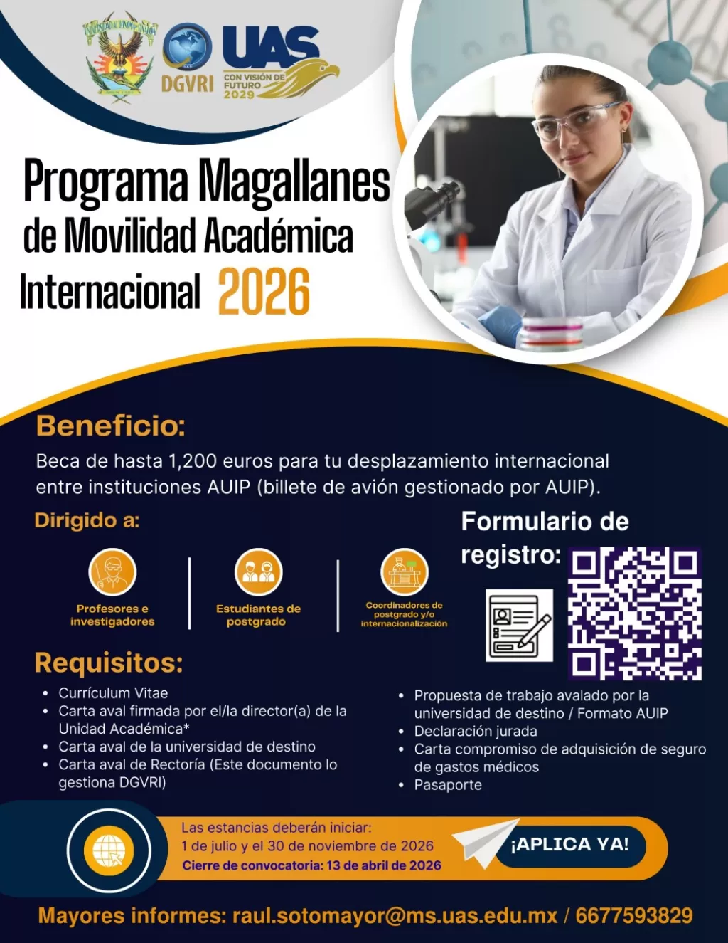 La Universidad Autónoma de Sinaloa (UAS) a través de la Dirección General de Vinculación y Relaciones Internacionales (DGVRI), se ha lanzado la convocatoria para el programa de movilidad académica internacional Magallanes 2026.